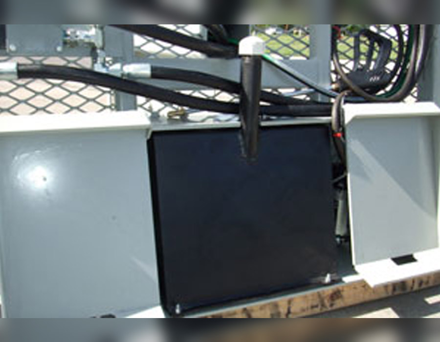 Additional option: 12-volt 8 gallon sprayer available which tucks in between the skid steer and saw.